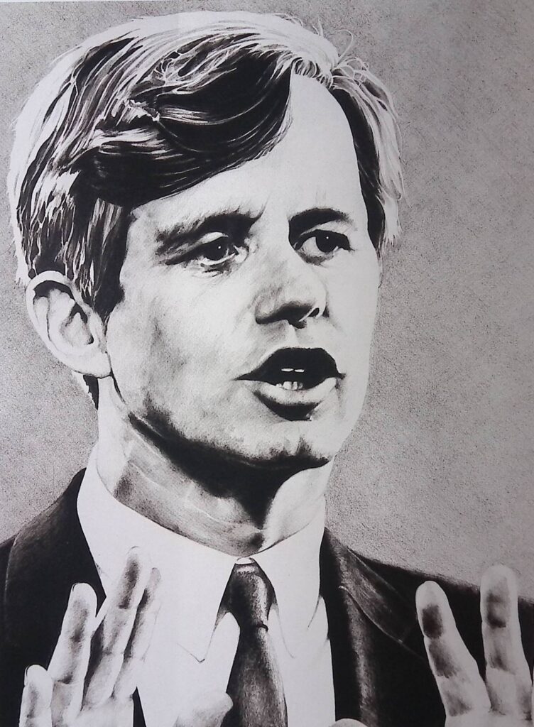 Robert Kennedy por Pedro Mancilla. Esta ilustración apareció publicada en la tercera edición de Moldes para la Fragua (Editorial Dimensiones, 1980).